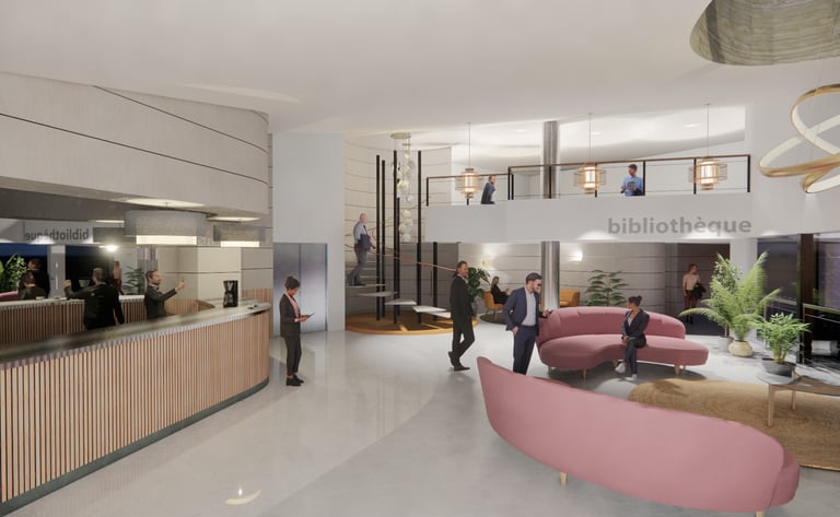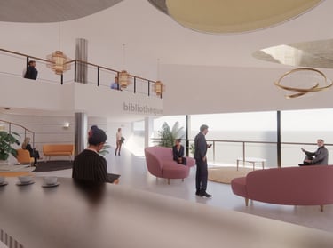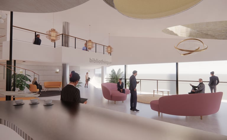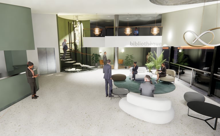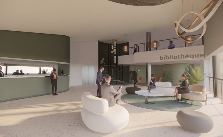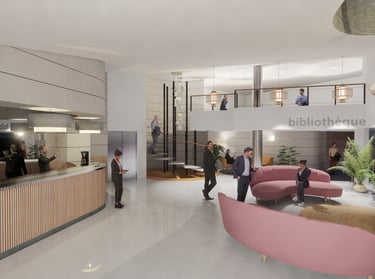 Le projet vise à redonner une identité et un usage qualitatif à cette salle située à l'interface du restaurant, en la transformant en un lieu de réception et de repos propice aux échanges informels.