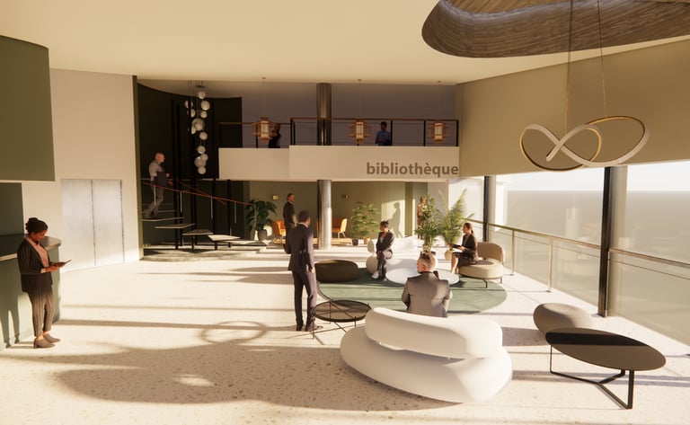 Deux propositions d'aménagement sont développées, offrant des ambiances distinctes - l'une sobre et chaleureuse, l'autre plus affirmée et contemporaine - dans le respect de l'esprit architectural du bâtiment.